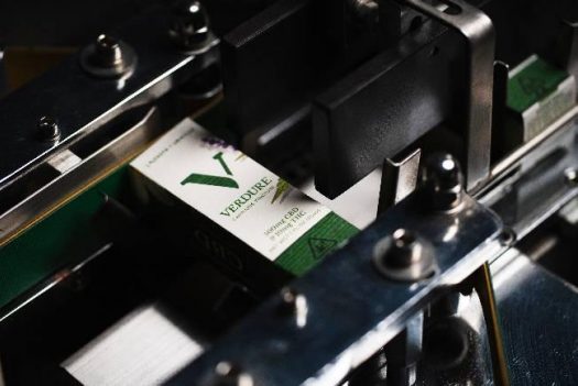 The thesis continues in the vape fill department, where Krane says automated and semi-automated fillers can churn out 18,000 vape units per shift. Automated packaging machines package each vape in a clamshell rather than a typical box with inner tray and tube. “It’s less paper and less touches,” Krane adds. “And because the paper board goes into the machine labeled, two operators can do nearly 28,000 of those in a shift.”