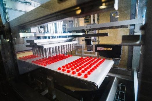 In 4Front Venture’s California mints department, the company has two presses. “They run at very high capacity,” Krane says, “and we can put them into the tins on automated packaging lines to the tune of 4,000 or so per shift.” In the gel cap encapsulation suite, the team can bottle somewhere between 5,000 and 6,000 units per shift. And in the kitchen, a large-scale automated confectionary cooker can produce 220 kilograms — or 485 pounds — of candy per hour on a continuous loop. “We can just keep making it,” he continues, “to upwards of 20,000 10-packs in a shift.”