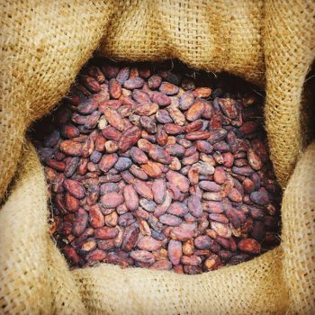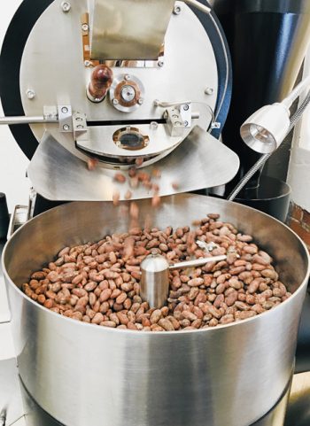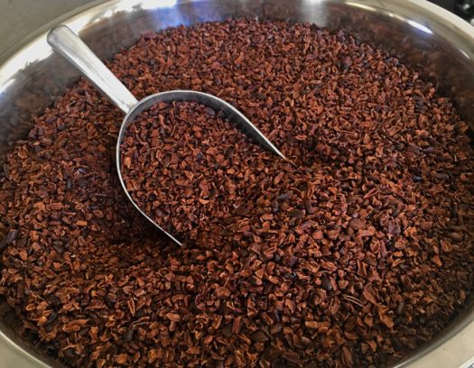 “We sort beans by hand,” she says, “roast them in a tiny batch of just about seven pounds, and sort again after roasting. Depending on the beans, we often spend hours winnowing — picking out husks that got into the nibs bin. Our cacao nibs are then stone-ground with organic cane sugar and cocoa butter until they become smooth chocolate. I still pour one bar at a time when tempering, foil wrap each bar, put on the outer wrapper, apply labels by hand, and write the batch number and best-by date by hand, one bar at a time.”