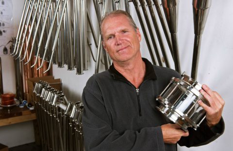 With most of the manufacturing in Montrose, the California facility concentrates on the finish of the reels. The reels are anodized by hand, a process that is time-consuming but creates a finish that increases resistance to corrosion and wear and also provides better adhesion for paint and glue. Abel offers a vast array of finish colors and designs to suit any taste. The process, done by hand, can take up to 10 hours to complete for each reel. The finishers are so skilled at what they do that Dragoo calls them “artists.”