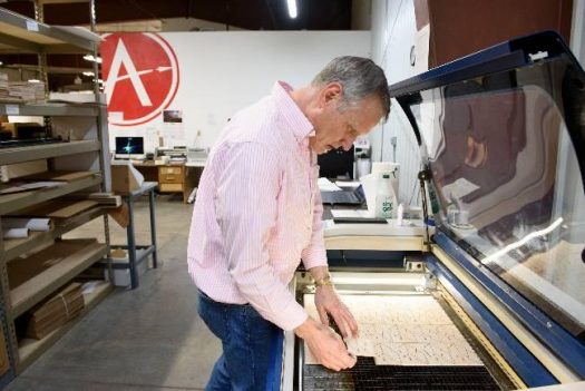 Working out of a 12,000-square-foot facility with a small storefront, Apogee starts with paper tubes and balsa wood and uses an Epilog Laser to cut components in-house.