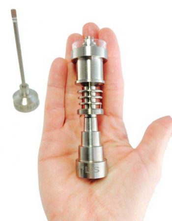 Abouzalam also highlights the company’s three-in-one Trinity Universal Nail. “I don’t know why, but still to this day nobody has stolen our idea for the three-in-one nail that has all three primary dabbing elements — titanium, ceramic, and quartz,” says Abouzalam. “These are just good heat conductors, and they allow for optimal flavor of cannabis concentrates.”