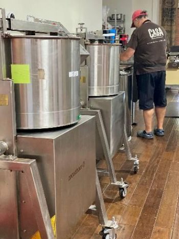 He adds, “We always have to have a couple hundred pounds of chocolate here, unmelted, untempered, ready to go. Our big issue is if we run out of beans, we’re completely hosed.”