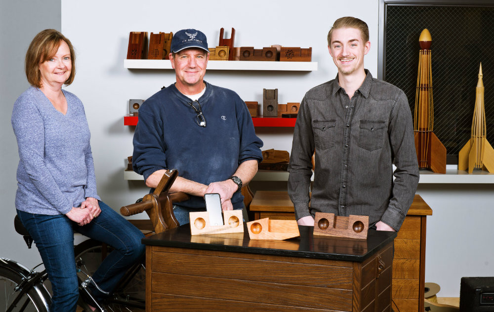Founder Jim Simon handcrafts acoustic wooden amplifiers for iPhones and other mobile devices, along with custom bicycle carts and other marvels of woodworking.