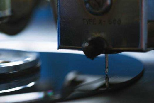 “A lot of people think [the manufacturing process is] like putting a blank CD in and hitting the [record] button and it does it,” says Baumeister. But that’s not the case, in terms of time: “Every record is listening and adjusting, and all sorts of work.” Each 40-minute record, for example, takes 40 minutes to cut the grooves into, after a 20-minute setup.