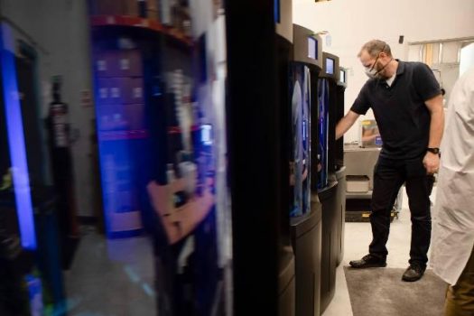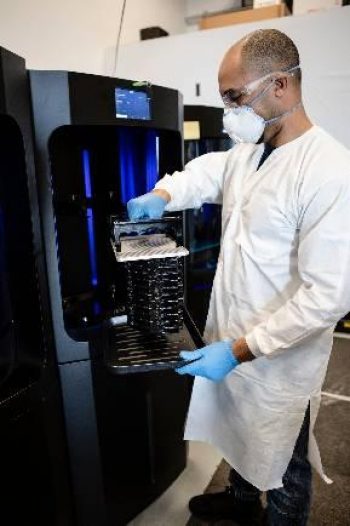 “The second is a sintering process involving liquid resins, powdered polymers, and multiple lasers that allow us to print very quickly,” says Reichental.