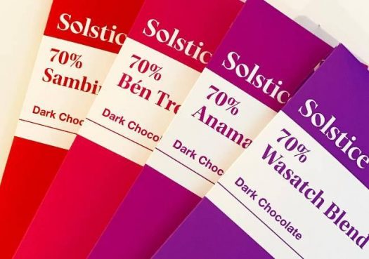 And she’s gotten help and recognition along the way: In 2021, Solstice Chocolate received a Local Supplier Development Grant from the Harmons grocery chain, which allowed the company to purchase specialty packaging for a couple of its more expensive bars.