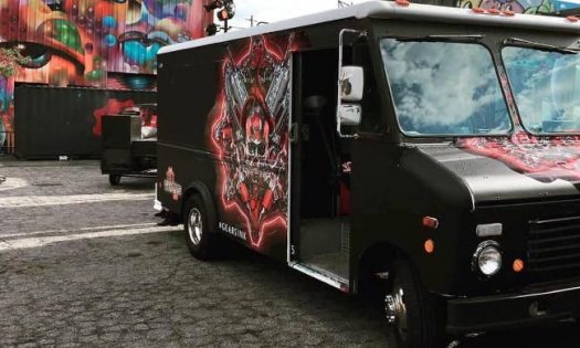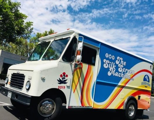 That involved buying a 1985 Grumman Olson step truck and transforming it into the world’s first mobile screenprinter. Welders built out a service window, then De Baca enlisted Denver street artist MPEK to give it a eye-grabbing paint job.