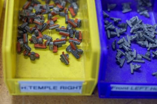 The same applies with the ears, notes Varady. Each ear stem varies in shape and angle according to the position and configuration of each ear. “So when you put the glasses down on a table, they often appear irregular, they may not lie flat,” he says. “But then you put them on, and it’s a perfect fit.”