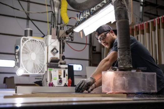Most of the work takes place at Xylem Design’s 8,000-square-foot shop, but it outsources metal fabrication and waterjet work. Equipment includes CNC tables, a spray booth, and a large-scale vinyl printer.